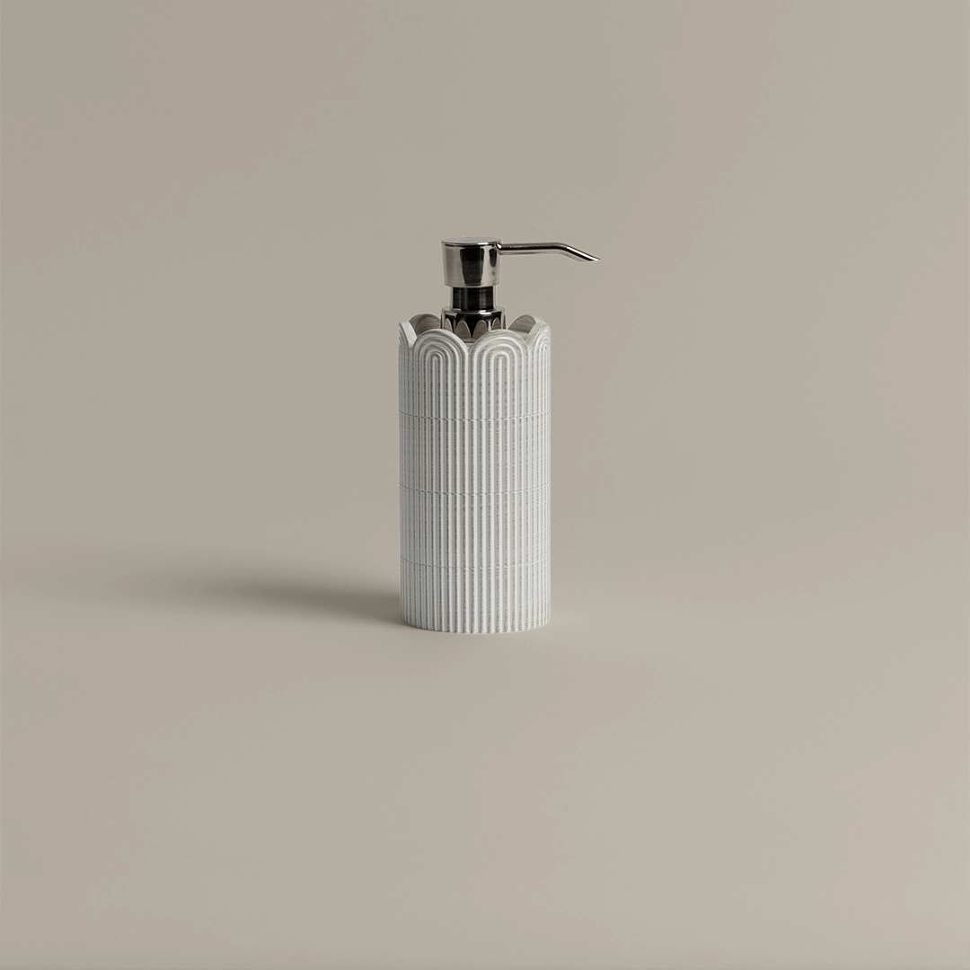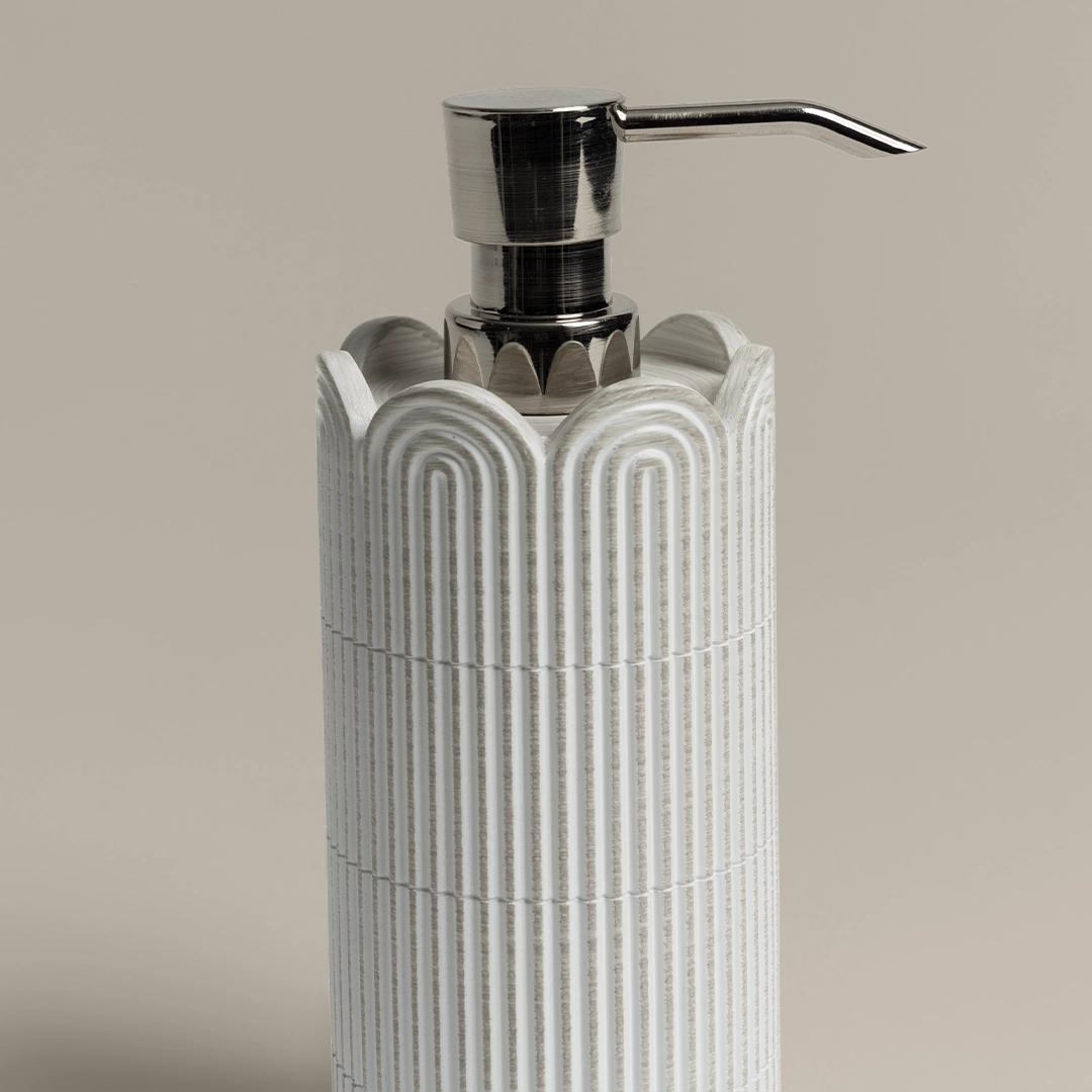 موزع صابون أنيق بلون أوف وايت، بتصميم عصري يضيف لمسة فاخرة إلى حمامك أو مطبخك. مصنوع من مواد عالية الجودة ليوفر متانة وأناقة في آنٍ واحد، مما يجعله خيارًا مثالياً للاستخدام اليومي بأسلوب راقٍ. من بيتي الصغير.