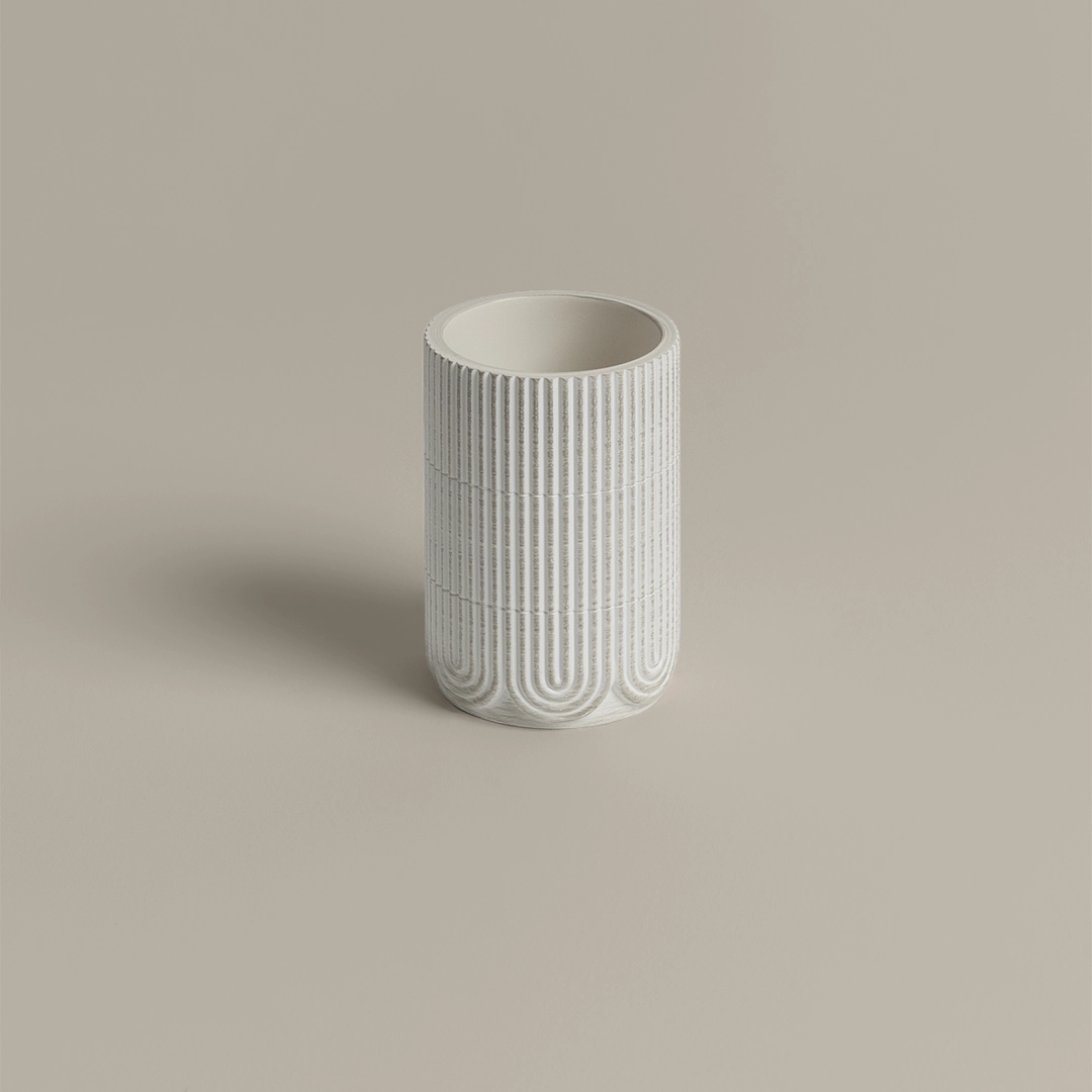 كوب من البوليريسين يجمع بين الأناقة والمتانة لتنظيم أدوات العناية اليومية بأسلوب راقٍ بتصميم رخامي بلون أوف وايت،يضيف لمسة عصرية في حمامك. عملي ومتناسق مع مختلف الديكورات. من بيتي الصغير.