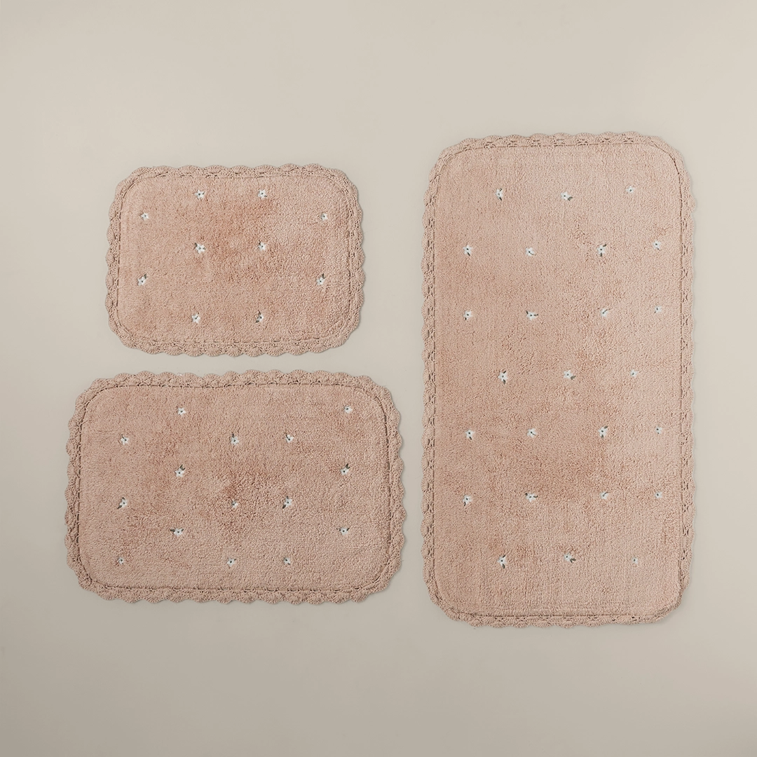 تتميز هذه الدعاسة القطنية بلونها البينك الهادئ والمميز، وصُنعت من 100% قطن طبيعي لضمان أقصى درجات النعومة والامتصاص الفائق للماء. تتوفر الدعّاسة بثلاثة مقاسات عملية لتناسب جميع مساحات الحمام، مما يجعلها إضافة مثالية تجمع بين الجودة العالية والجمالية الرقيقة.