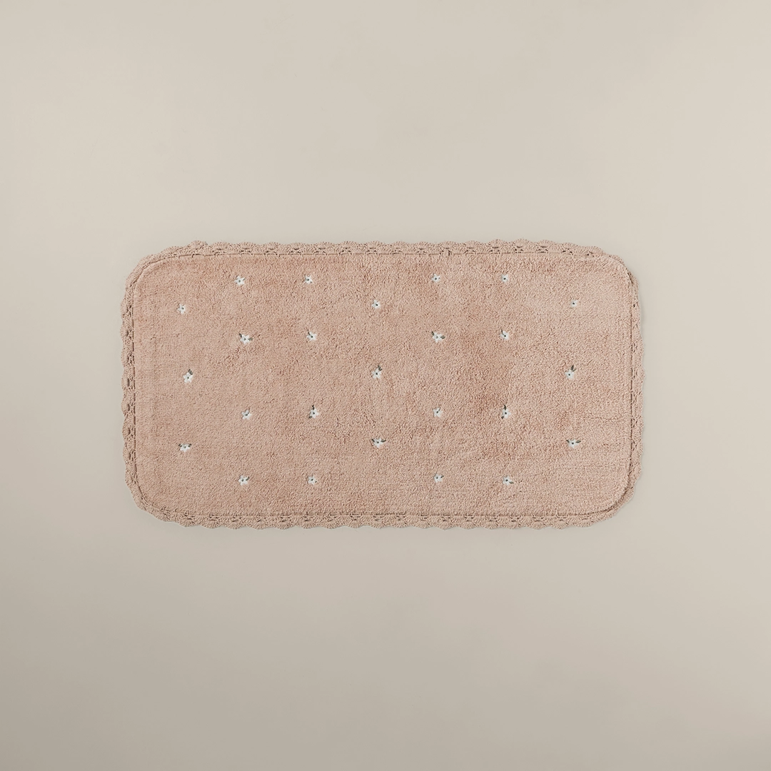 دعّاسة الحمام القطنية بلونها البينك الناعم وتصميمها العملي، مصنوعة من 100% قطن لتمنحك ملمسًا ناعمًا تحت القدمين، كما أنها سريعة الجفاف وسهلة الغسل في الغسالة.