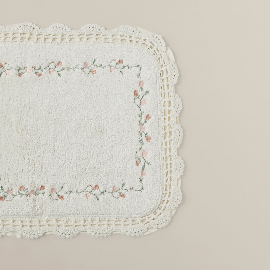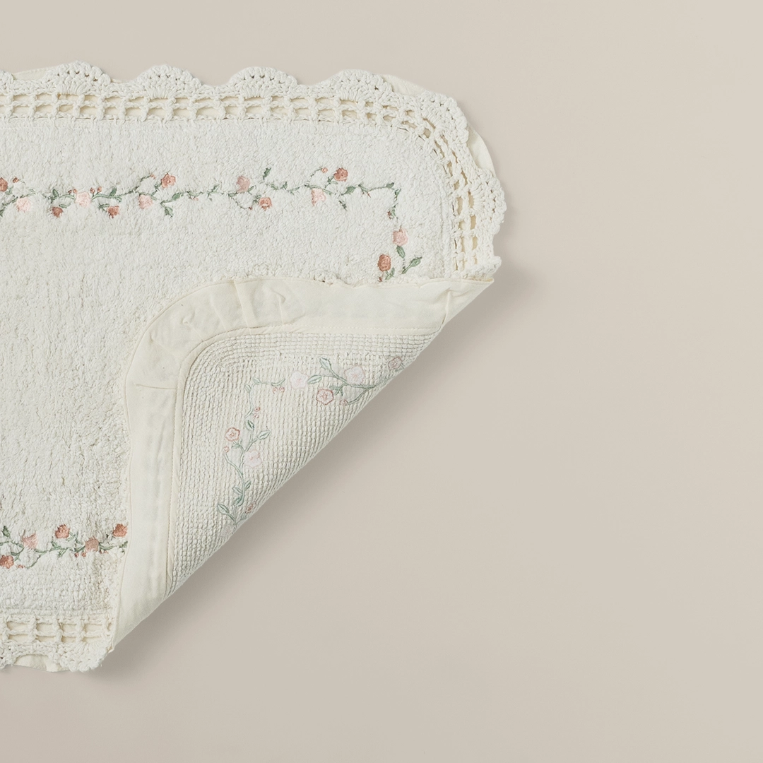 تتميز هذه الدعّاسة بلونها الأوف وايت النقي، وصُنعت من ١٠٠٪ قطن طبيعي لضمان النعومة الفائقة والامتصاص الفوري للرطوبة. الدعّاسة آمنة بفضل قاعدتها غير القابلة للانزلاق، وهي مثالية للحمام اليومي وتتوفر بثلاثة مقاسات عملية (40×60، 50×80، 60×120 سم).