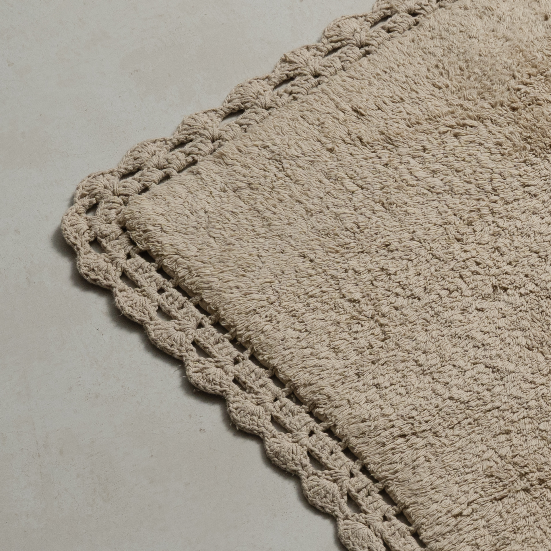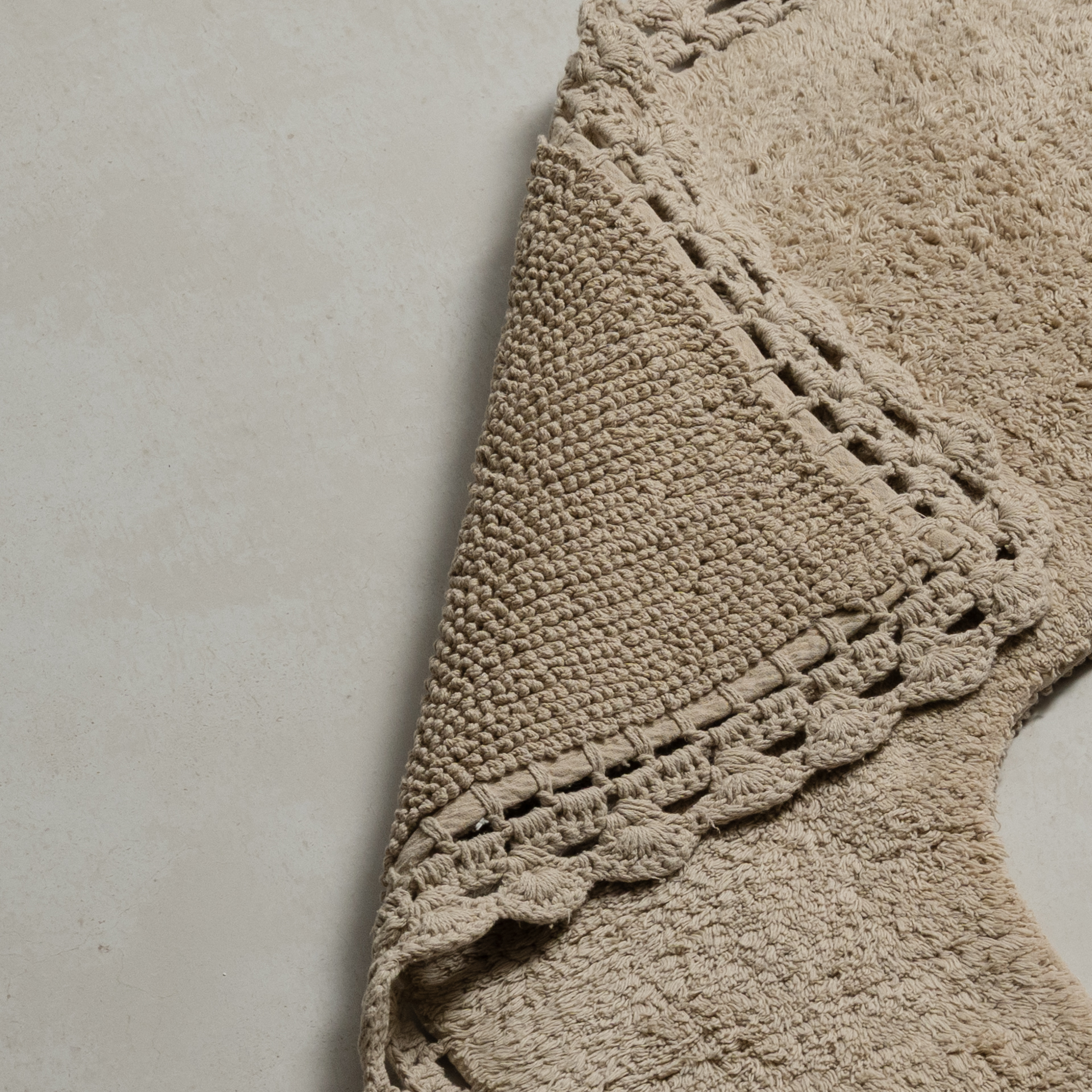 دعّاسة كرسي بلون بيج غامق بأطراف كروشيه، بمقاس عملي 60×50 سم، مصنوعة من خامة ناعمة عالية الامتصاص.
