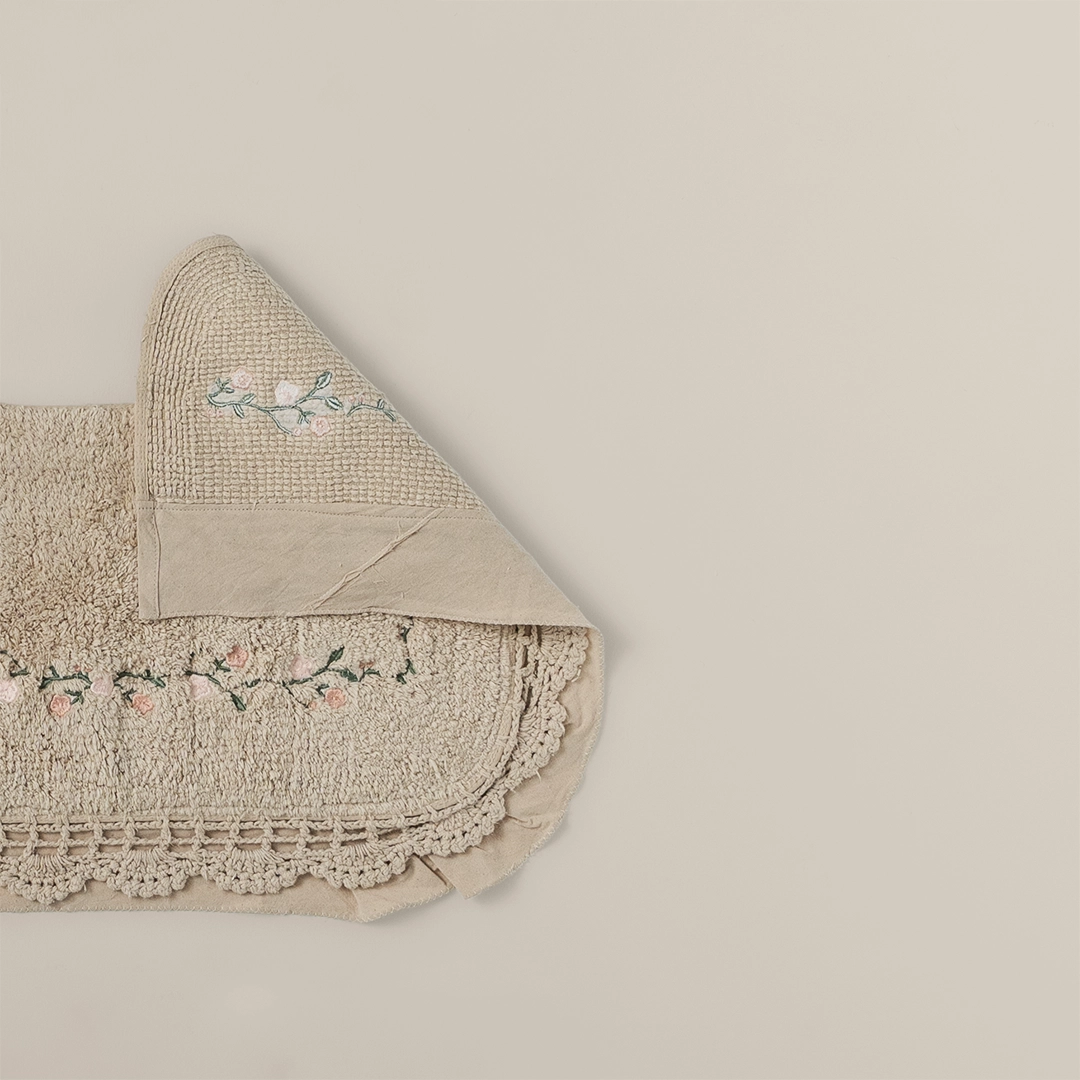 دعاسة حمام قطن مطرز بعدة مقاسات بيج غامق