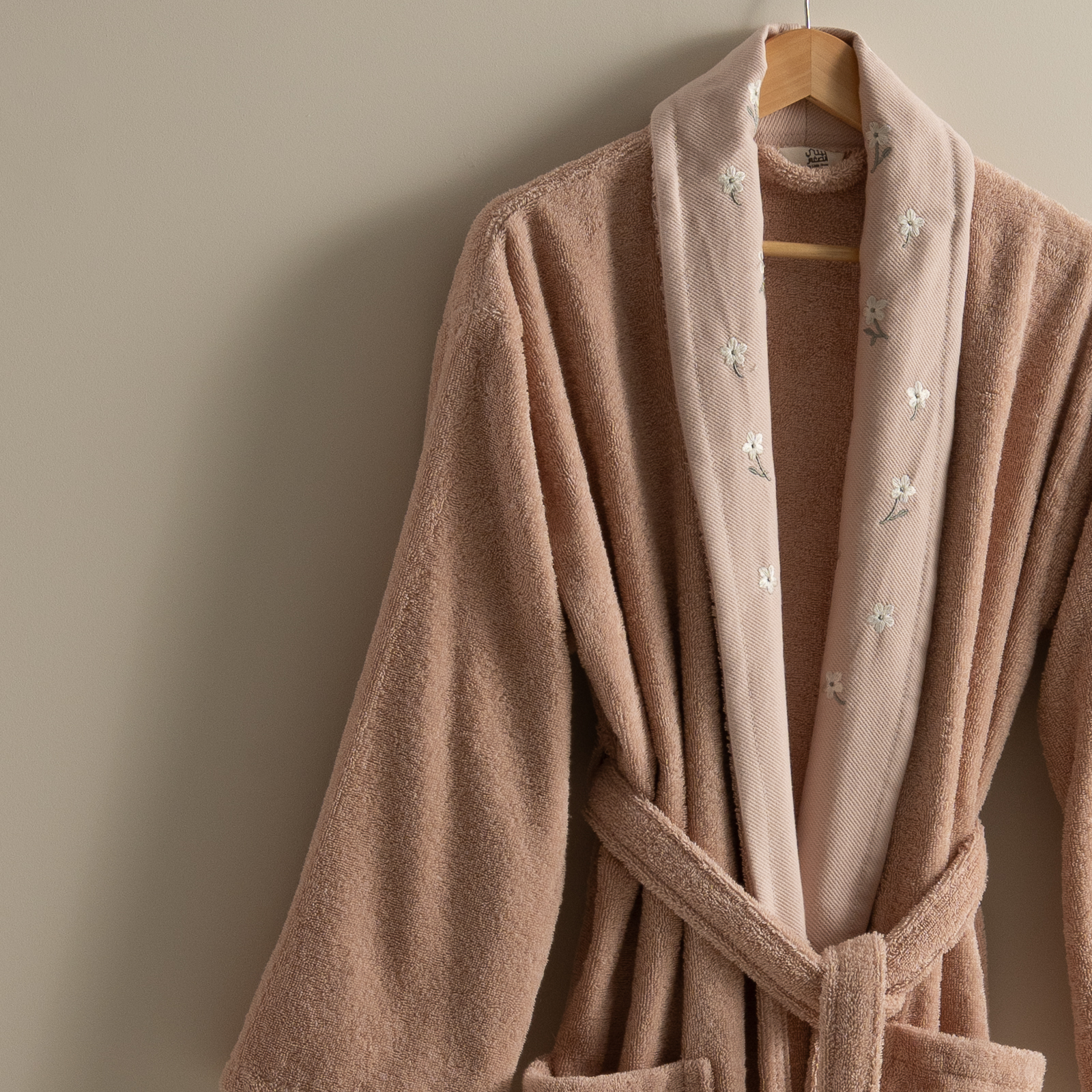 روب حمام قطن مطرز بينك بعدة مقاسات