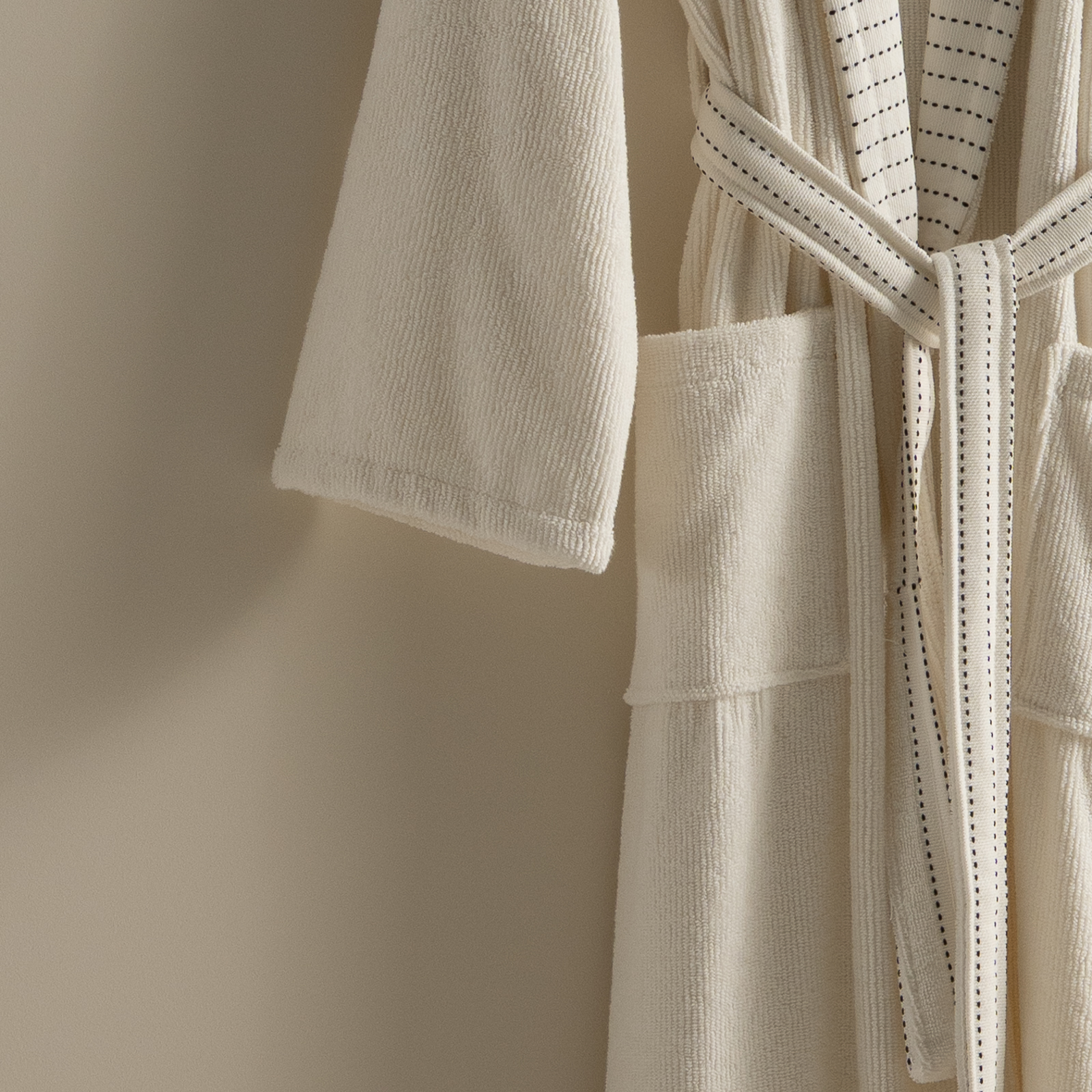 مصنوع من قطن 100% ناعم وعالي الامتصاص، بتصميم لف عملي مع حزام وجيوب جانبية.