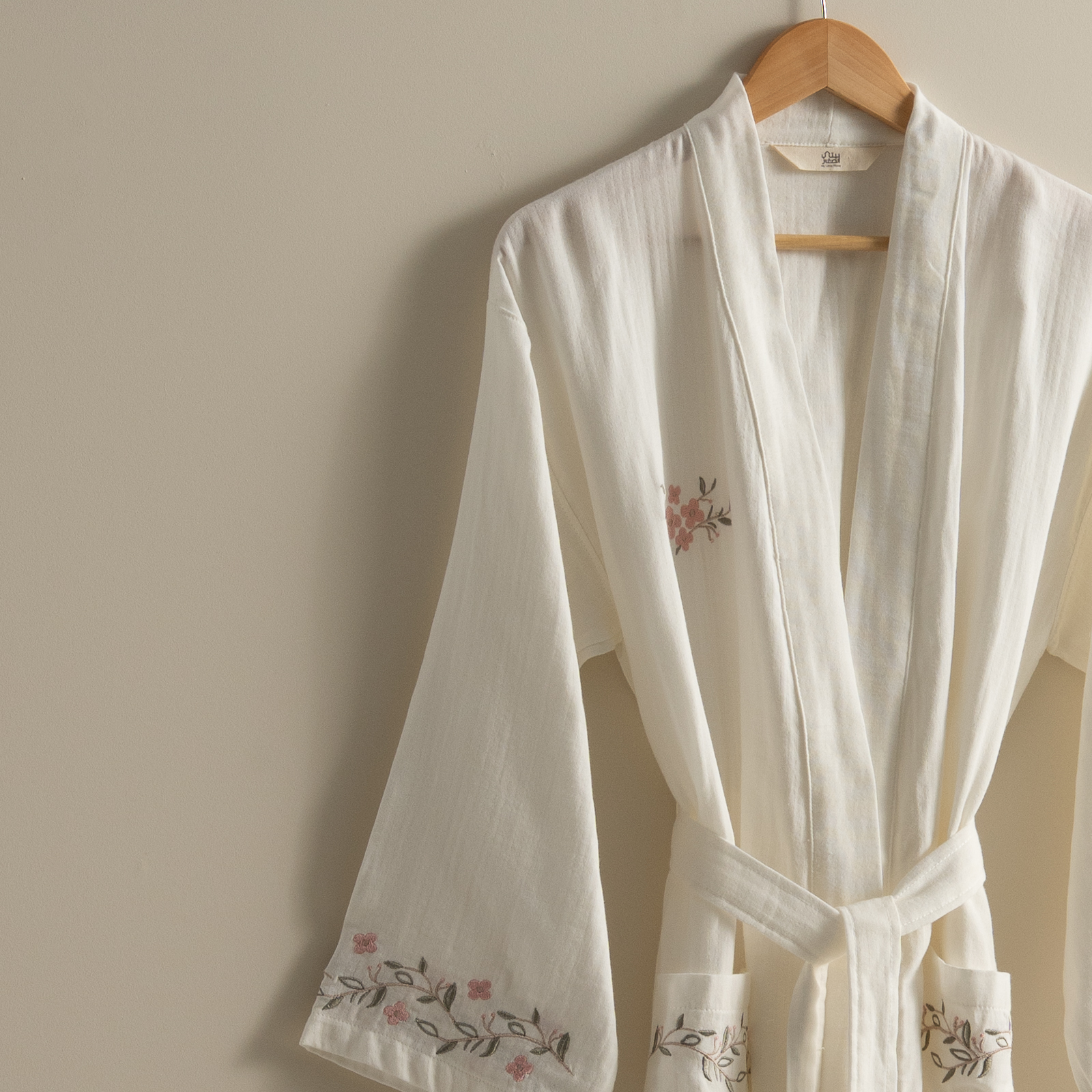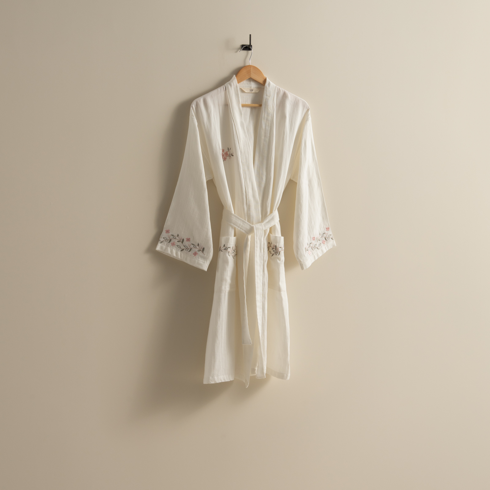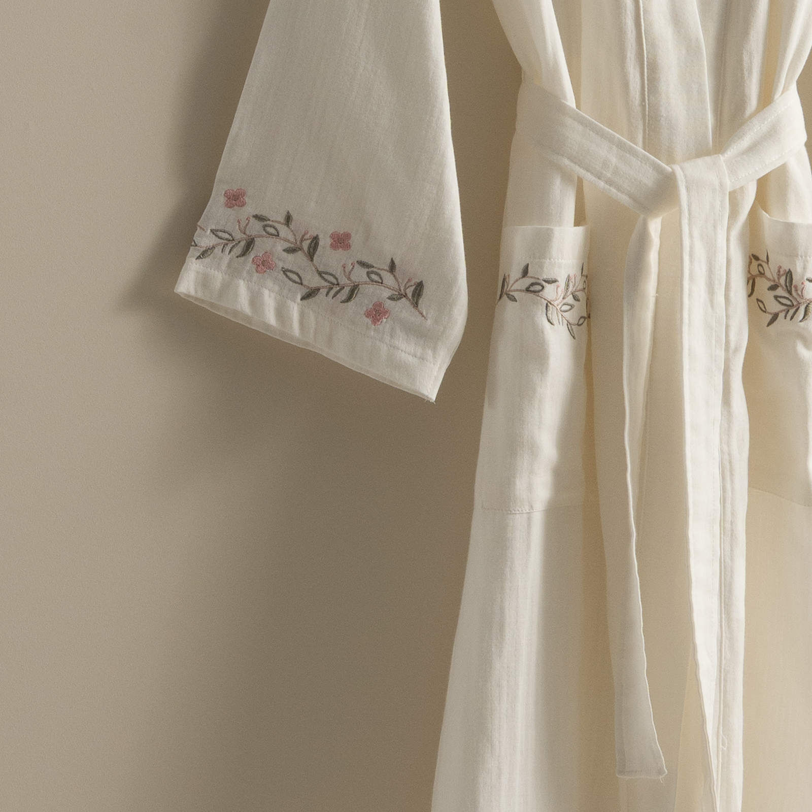 مصنوع من قطن 100% ناعم وعالي الامتصاص، بتصميم لف عملي مع حزام وجيوب جانبية.