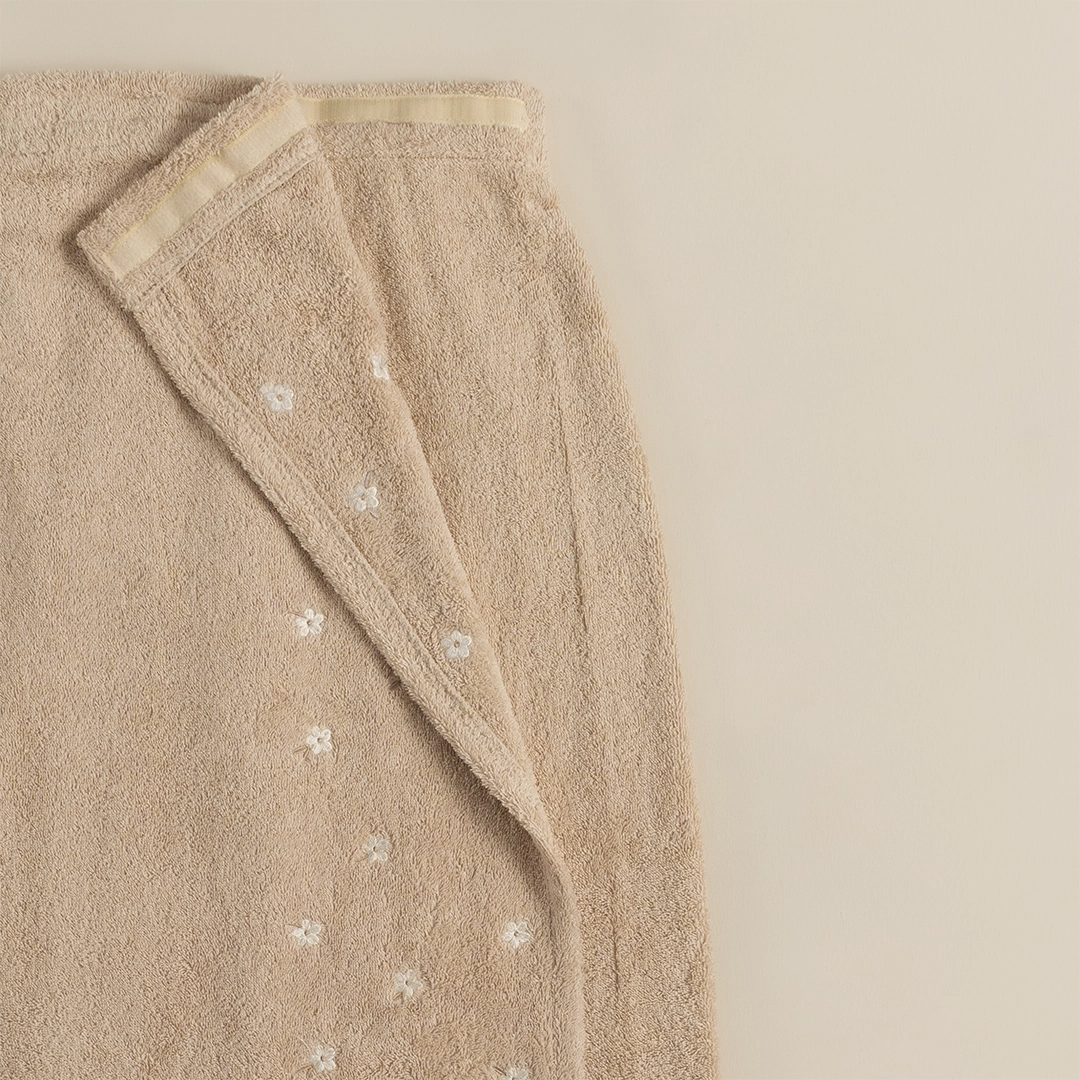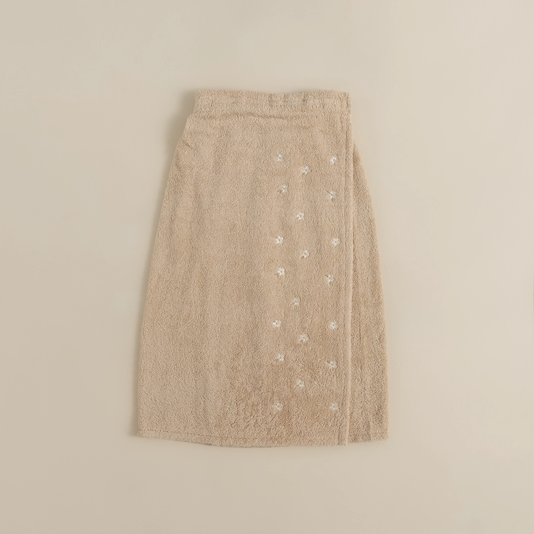 تمنحك هذه التنورة راحة مثالية بعد الاستحمام بفضل خامتها القطنية 100٪ التي تمتص الرطوبة بسرعة وتترك بشرتك جافة ومنتعشة.