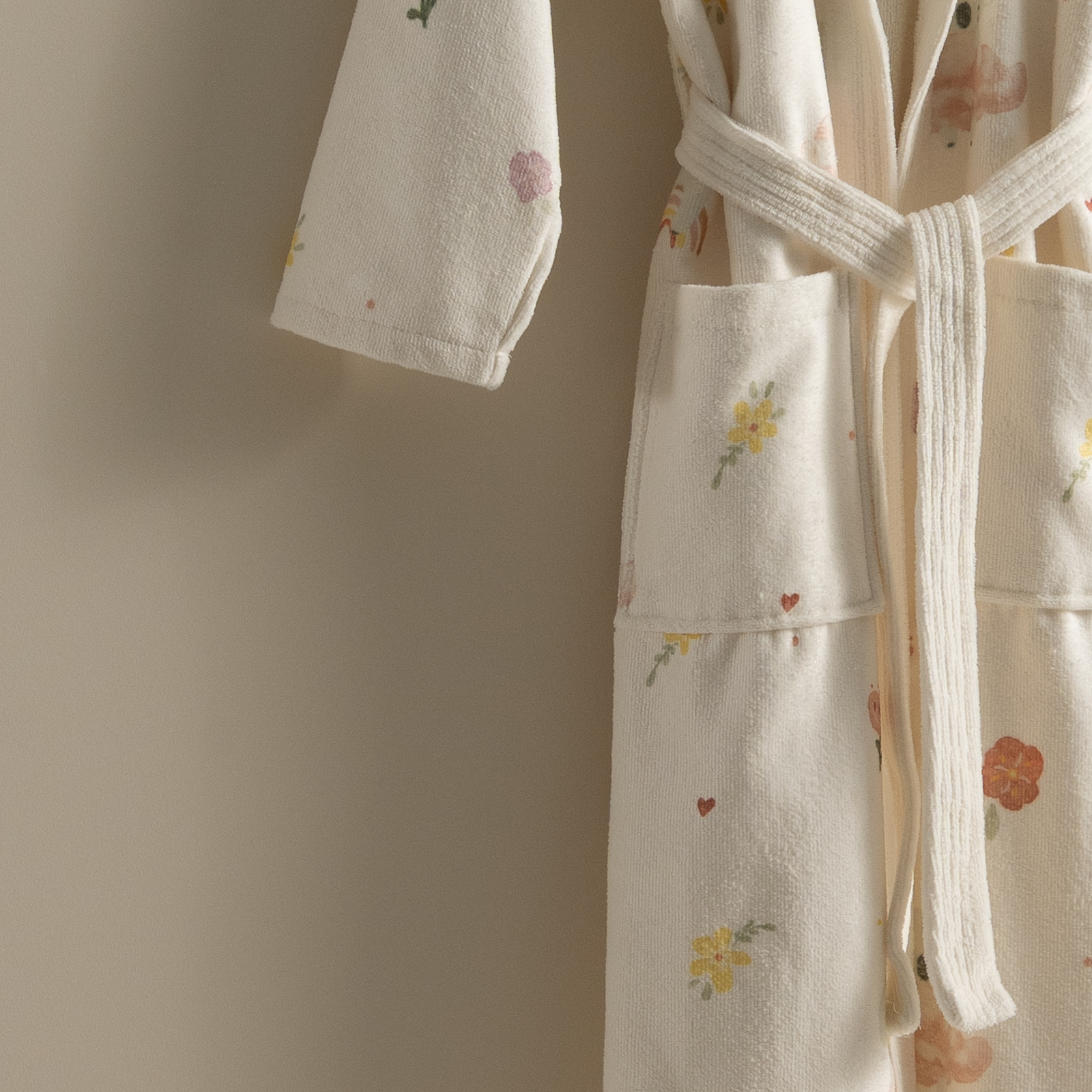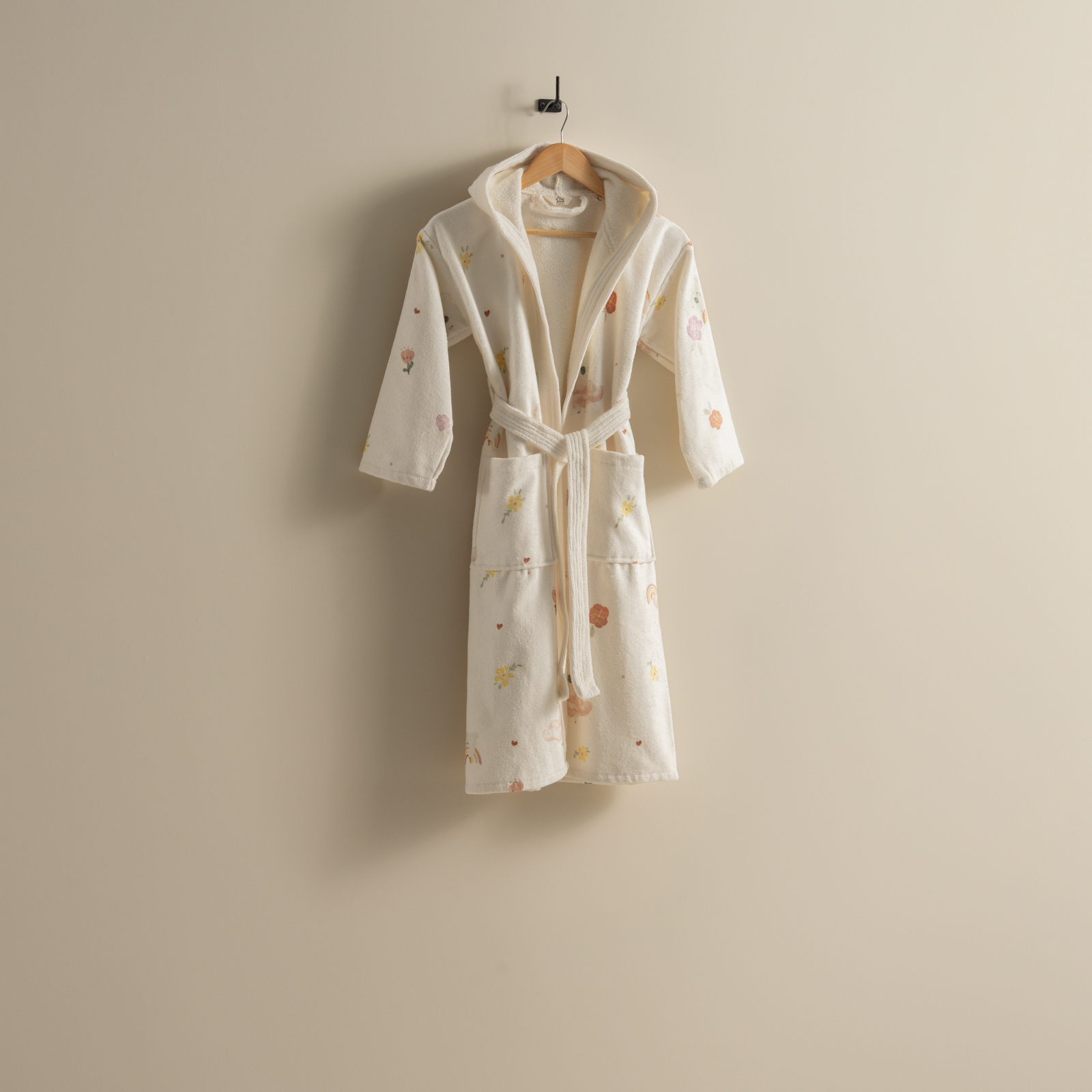 روب حمام أطفال قطن لون أوف وايت متعدد المقاسات