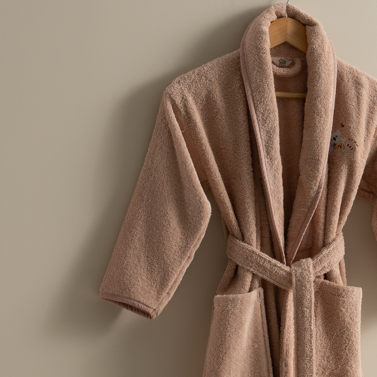 روب حمام أطفال قطن لون بينك متعدد المقاسات