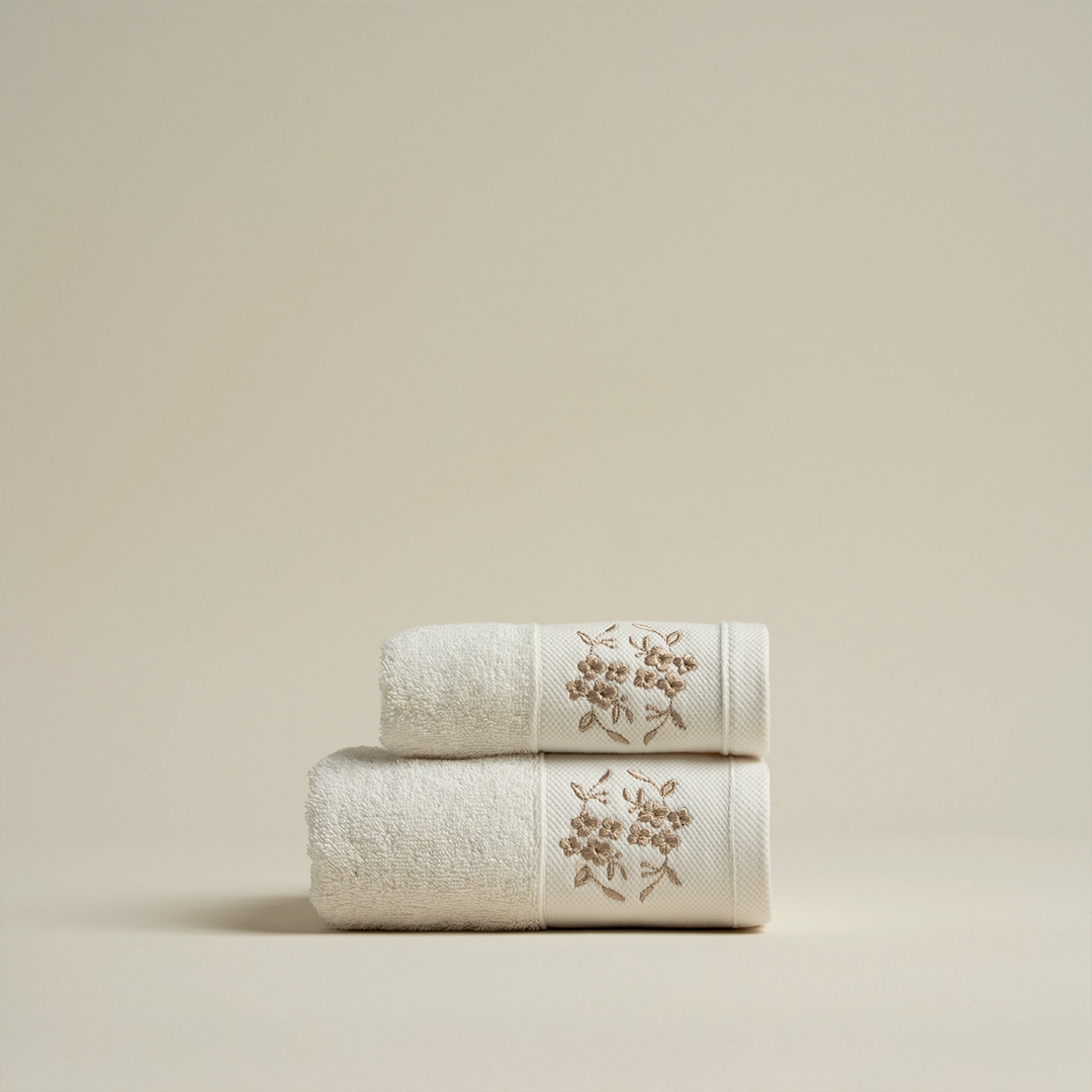 منشفة قطن مطرز بيج غامق