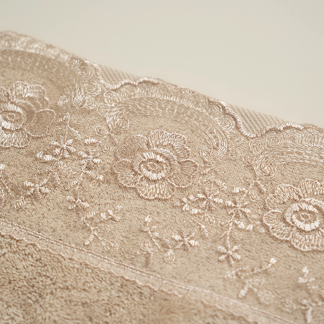 منشفة قطن مطرز لون بيج غامق