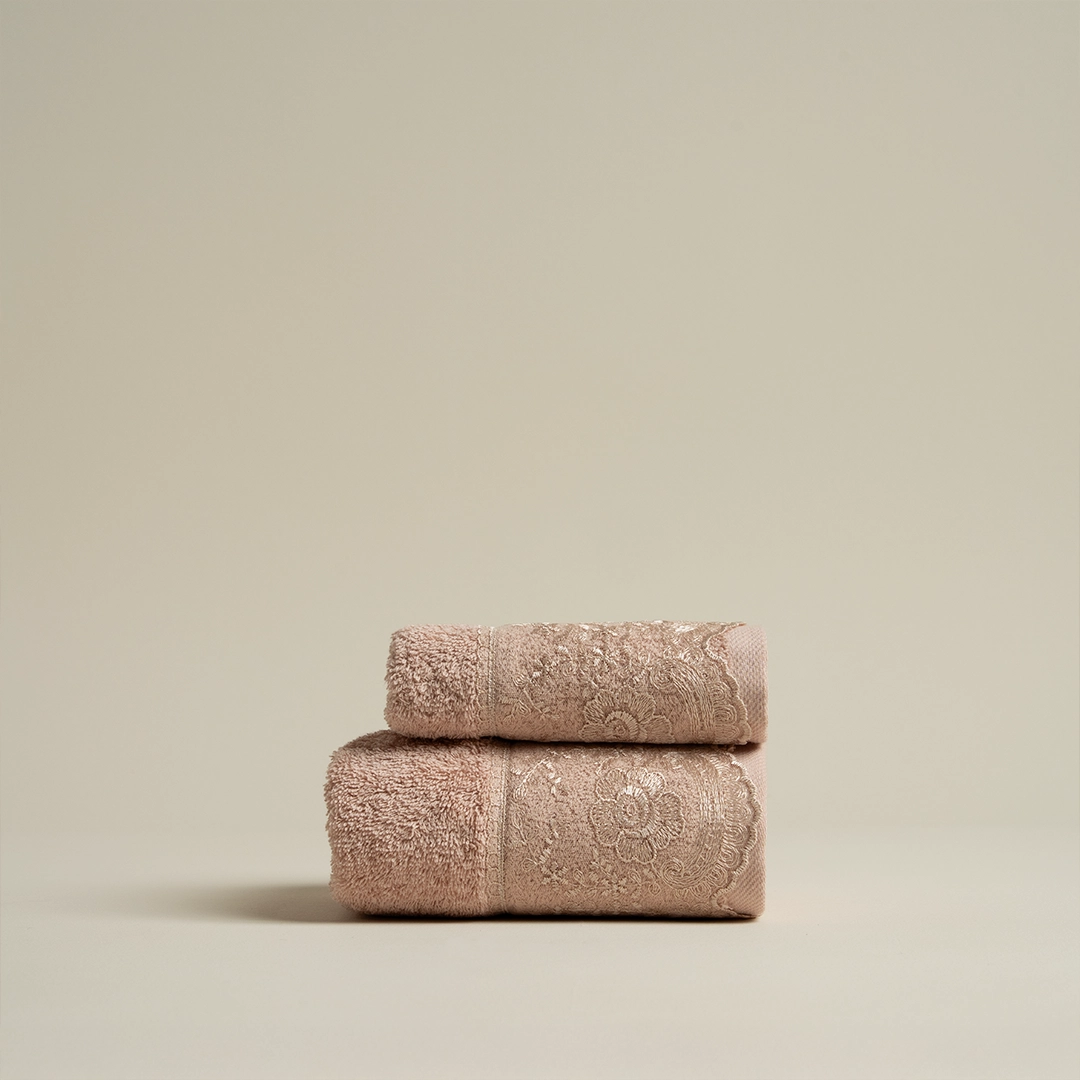 منشفة قطن مطرز لون بينك