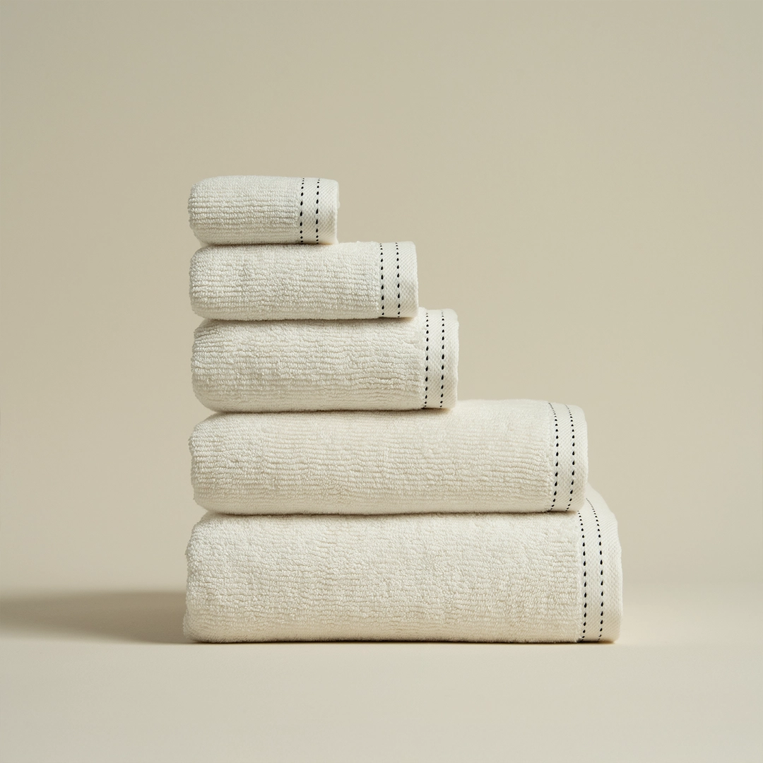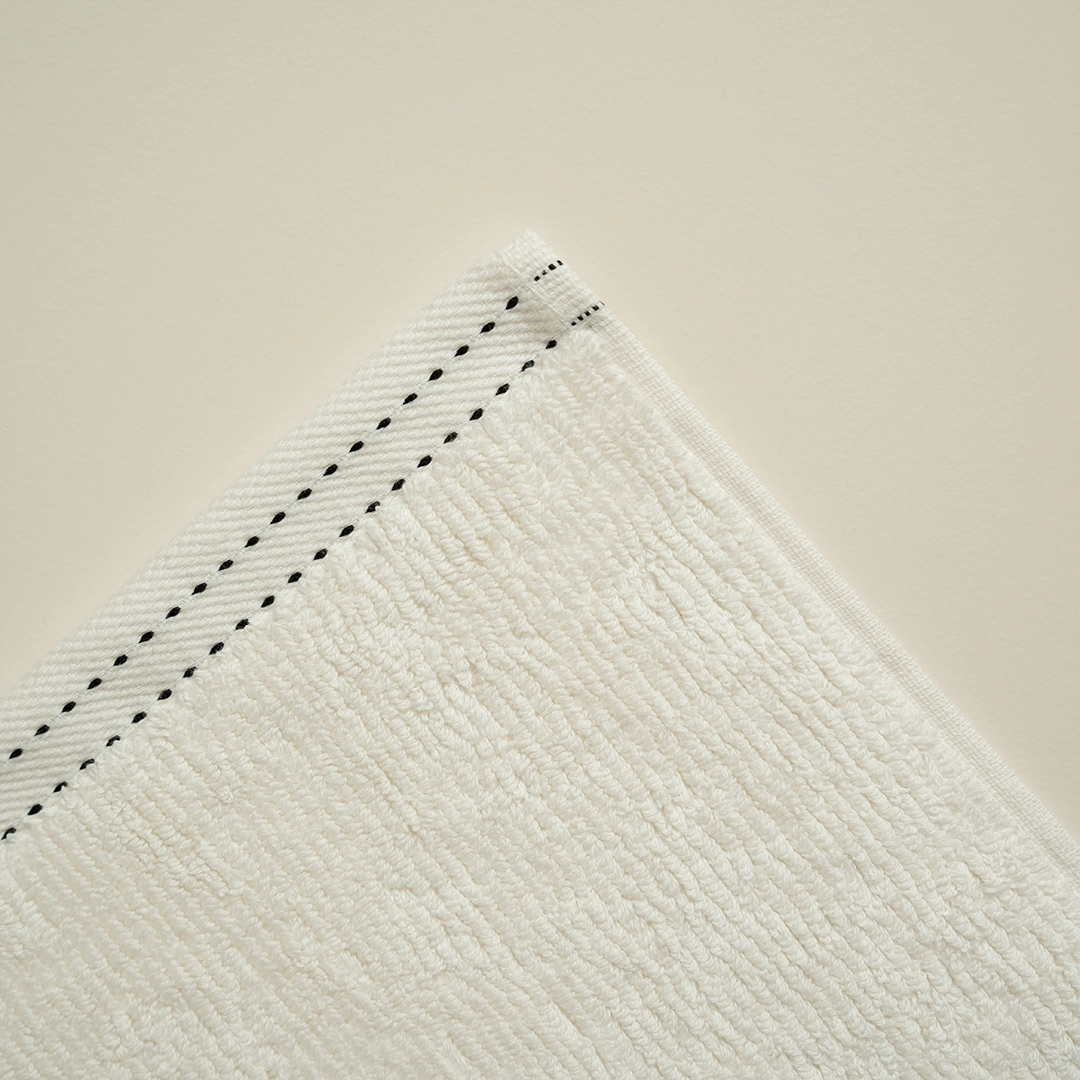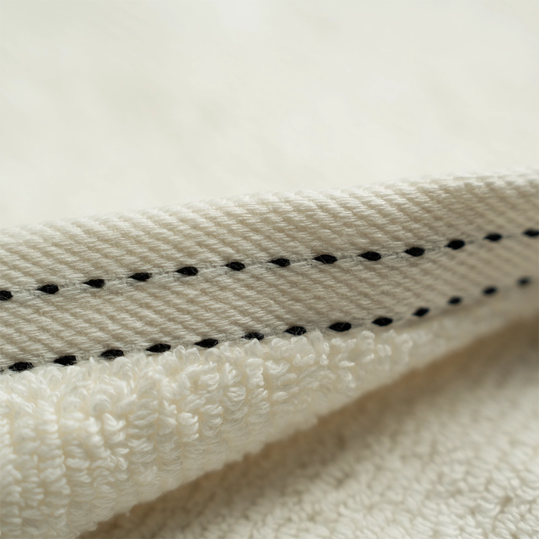 حياكة متقنة تضمن ثبات الأطراف وسلامة المنشفة، مما يؤكد جودة الصنع.