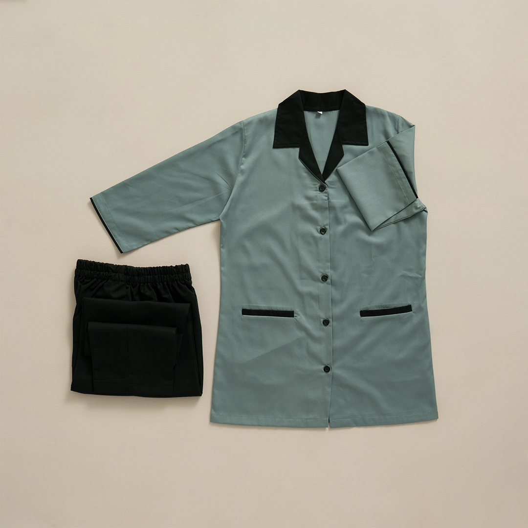 يونيفورم عملي بتصميم مريح وفضفاض، يوفّر حرية حركة عالية ومظهرًا مرتبًا للاستخدام اليومي مع سهولة في الارتداء والعناية.