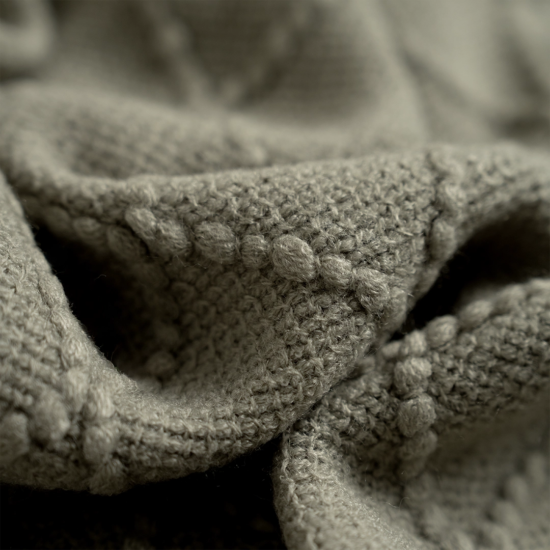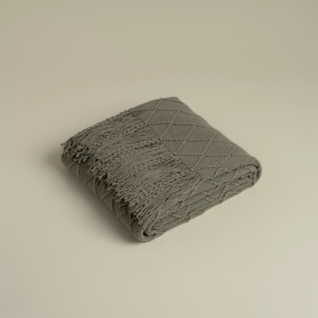 رمية كنب أكريلك خضراء. نعومة طبيعية، لون مستوحى من الطبيعة، ودفء مريح.